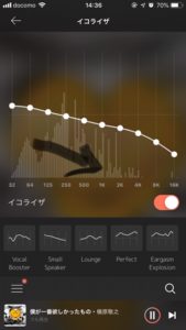 AWAのプリセットされてるイコライザは、かなり優秀で、そういったイアホンやスピーカーに適した設定もあります。